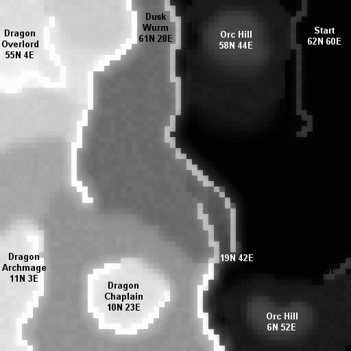 Dragon realm, a mountainous landscape scatterred with dragon icons and riddled with orcs, dragons, wurms…